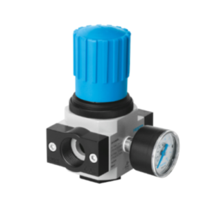 The Festo LR-1/8-D-MINI (159624) is a compact pneumatic pressure regulator with G1/8 connection, 0.5–12 bar regulation range, and 800 l/min flow rate—ideal for precise compressed air control in compact systems.