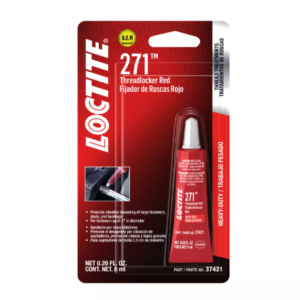 LOCTITE 271 is a red, high-strength, low-viscosity threadlocker designed to permanently lock fasteners and prevent loosening from heavy shock and vibration.