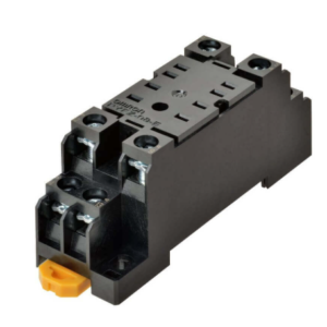 DIN rail or surface-mount 8-pin relay socket with screw terminals, designed for secure installation and reliable connections for compatible plug-in relays and timers.