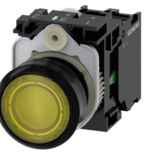 The 3SU1102-0AB30-1BA0 Illuminated Pushbutton from Siemens is a 22 mm yellow momentary pushbutton featuring a flat actuator, integrated 24 V AC/DC LED illumination, and one normally open (NO) contact. Ideal for industrial control panels requiring clear visual indication and reliable operation.