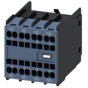 The 3RH29111HA22 Auxiliary Contact Block from Siemens is a snap-on, S00/S0 size accessory with 2 NO + 2 NC contacts, rated at 10 A, designed to expand the functionality of Siemens SIRIUS contactors.