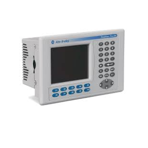 Compact PanelView Plus 600 HMI with 5.7-inch monochrome display, keypad input, and Ethernet/serial connectivity for reliable machine control and monitoring.