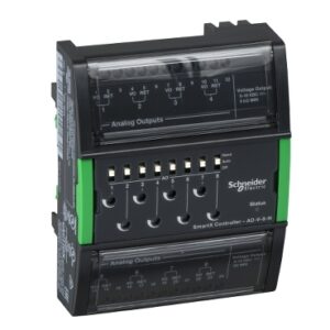 The SpaceLogic AO-V-8 is an 8-channel analog voltage output I/O expansion module designed for the SpaceLogic AS-P Server, enabling reliable control of actuators and other analog-controlled devices.
