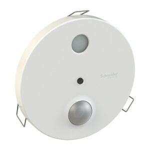 The SpaceLogic RP-C-EXT-MS-BLE by Schneider Electric is a ceiling-mounted multi-sensor designed for RP-C room controllers. It provides infrared motion detection, luminosity measurement, and Bluetooth® Low Energy connectivity for smart HVAC and building automation applications.