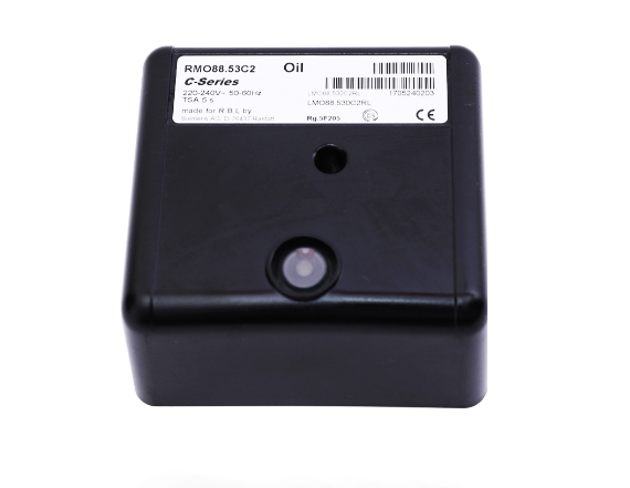 The Siemens RMO88.53C2 is a dedicated burner control box engineered for integration with Riello oil burner controllers. Designed to manage and supervise the burner sequence, this unit ensures safe startup, flame monitoring, and controlled shutdown in oil-fired heating systems.