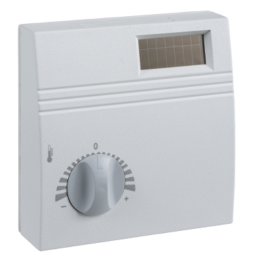 Compact indoor sensor for measuring temperature and humidity, powered by a solar cell with battery backup, featuring wireless communication at 868.3 MHz and easy surface mounting.