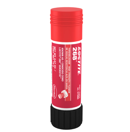 LOCTITE 268 Threadlocker Stick is a red, high-strength anaerobic threadlocking adhesive supplied in a convenient semi-solid, non-drip stick format. It is specifically designed for applications where liquids may run or drip, making it ideal for vertical, horizontal, and overhead assemblies.
