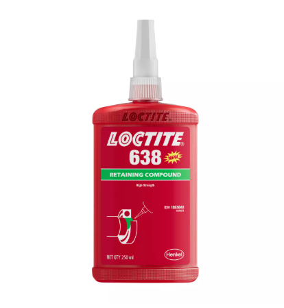LOCTITE 638 Retaining Compound is a high-strength, general-purpose anaerobic adhesive designed for the permanent bonding of cylindrical metal components, including shafts, gears, pulleys, bushings, and sleeves.