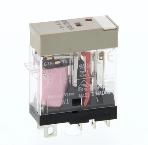 The Omron G2R-1-SN 120VAC (S) is a compact general-purpose relay designed for high reliability and ease of use in a wide range of industrial and interface applications. Featuring a single-pole double-throw (SPDT) contact with a 10A carry current capacity, it ensures consistent switching performance. The relay comes with a transparent case for visual inspection, an LED indicator for easy status monitoring, and a mechanical indicator for added convenience. Its plug-in socket mounting allows for simple installation and replacement, making it an excellent choice for control panels and automation systems.