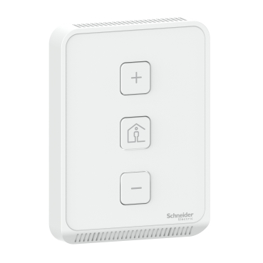 This cover does not include a display but incorporates local LED signaling in red, green, and blue to indicate heating or air-conditioning application status. It also supports override functionality, enabling occupants to switch to timed occupied mode for after-hours operation, enhancing comfort and energy management flexibility.