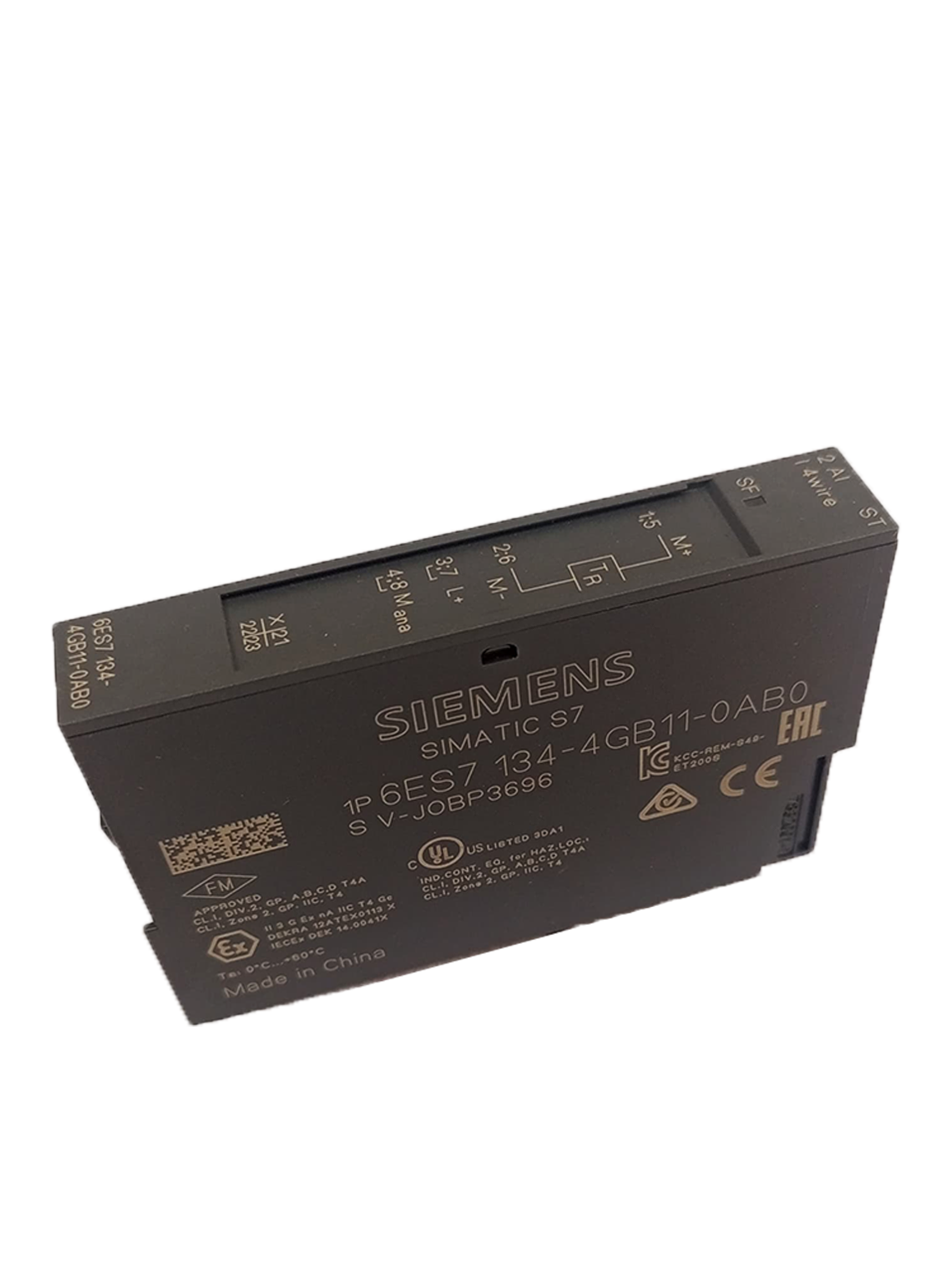 The Siemens SIMATIC 6ES7134-4GB11-0AB0 is a 2-channel analog input electronics module for the ET 200S distributed I/O system, ideal for precision current measurements in industrial automation environments. It supports ±20 mA (13-bit + sign) and 4–20 mA (12-bit) signals, allowing flexible integration with 4-wire transmitters.