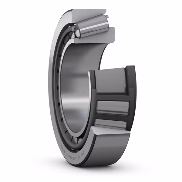 This bearing type is separable: the inner ring with rollers and cage (cone assembly) can be mounted separately from the outer ring (cup). This design simplifies installation and removal while allowing for interchangeability of components.