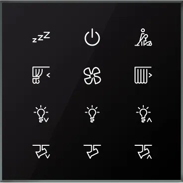 The Schneider Electric LSSMBU12NP SpaceLogic Glass Touch Panel offers a sophisticated and intuitive control interface for hotel room environments. Featuring 12 configurable touch buttons, it enables centralized control of lighting, ventilation, temperature, and other room functions with exceptional ease of use.