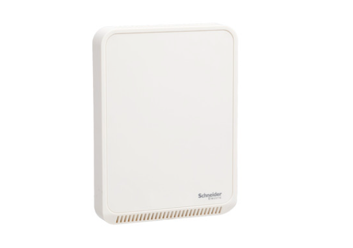 Housed in a medium matte white wall-mounted enclosure, the device features a clean, minimalist design with no user interface or display, protected by a blank cover for tamper resistance and durability. This makes it ideal for installations in commercial offices, residential living spaces, hotels, healthcare facilities, and other indoor environments where discreet monitoring is required.
