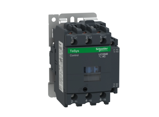 Designed for durability and operational efficiency, the LC1D40P7 supports up to 3,600 operating cycles per hour and performs reliably in ambient temperatures up to 60°C. Its compact design (75 mm width) allows for easy integration into control panels, with flexible mounting options including DIN rail or screw fixing.