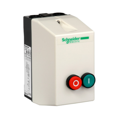 The Schneider Electric LE1D18Q7 TeSys LE enclosed direct-on-line (DOL) starter is a robust and ready-to-use motor control solution for 3-phase motors up to 7.5 kW at 400V. Designed for simple and reliable motor starting, it supports one-directional (forward) control using clearly marked green (start) and red (stop) pushbuttons.