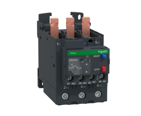 The Schneider Electric LRD350 TeSys LRD thermal overload relay is designed to protect 3-phase motors from overload, phase failure, and current imbalance. With a thermal setting range of 37 to 50A and tripping class 10A, it is ideal for safeguarding motors up to 22 kW at 400V.